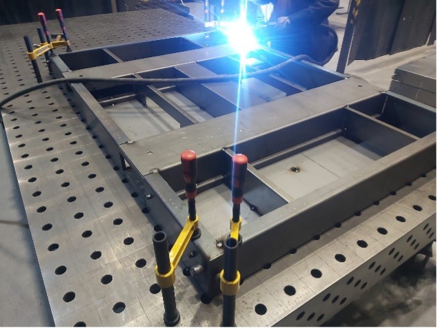 Strojírenská výroba byla v plném rozsahu zavedena v roce 2012, když jsme nastěhovali nově pořízené technologie – vysekávací a ohraňovací lis, svařovací robotizovanou linku s odsáváním a posléze i práškovou lakovací linku do nově postavené výrobní haly.